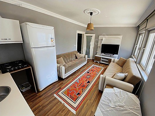Квартира смотрит сразу на все четыре стороны света — это редкость для формата 2+1, и значит окна и балкон будут со светом в любое время суток. Меблировка уже есть, заезжать можно сразу — состояние «свободно». Открытая парковка во дворе включена, что для Гюзелобы удобно.